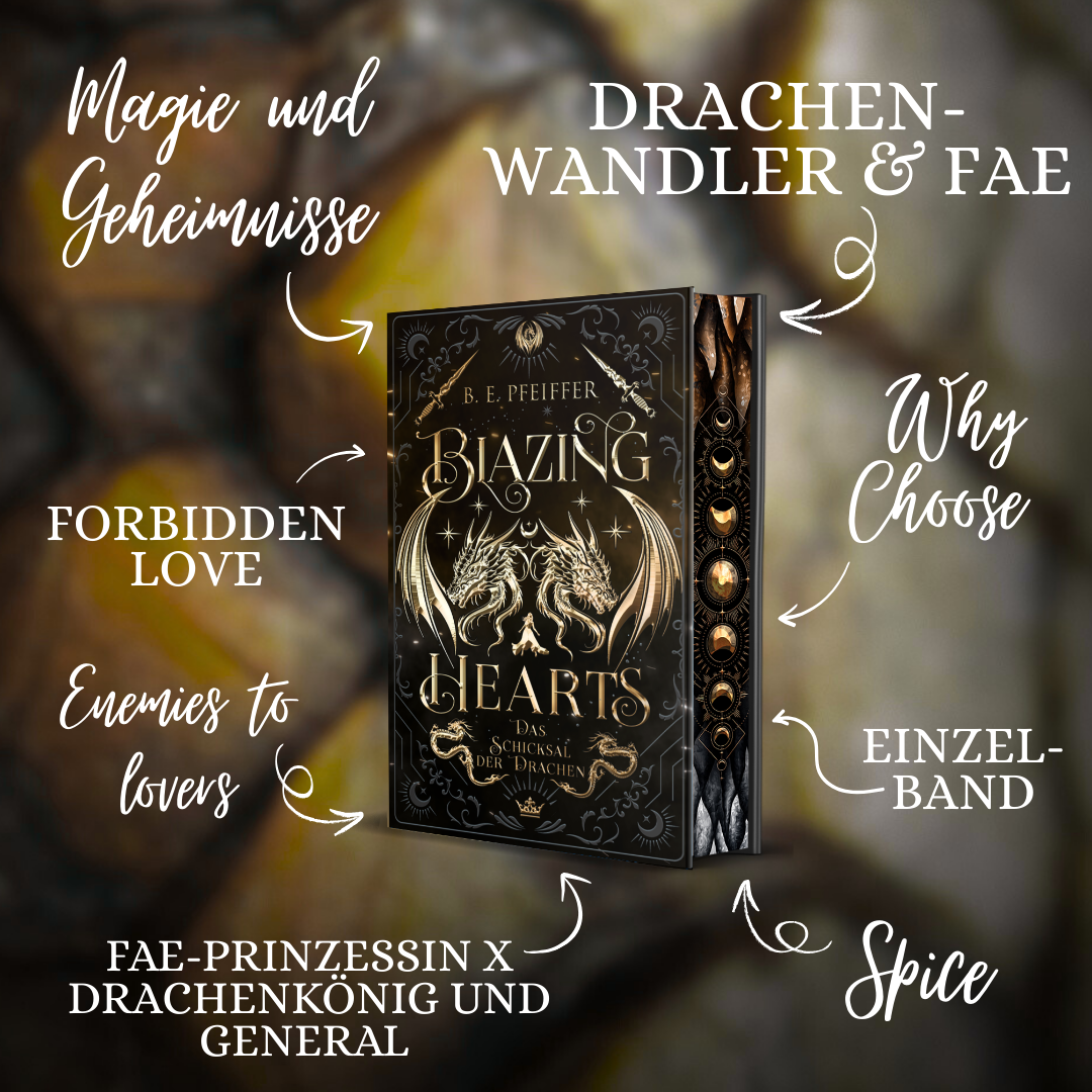 Im Romantasy-Einzelband „Blazing Hearts“ von B.E. Pfeiffer erwartet euch eine prickelnde Why-Choose-Story zwischen zwei Drachenwandlern und einer Fae-Prinzessin. 🔥😍