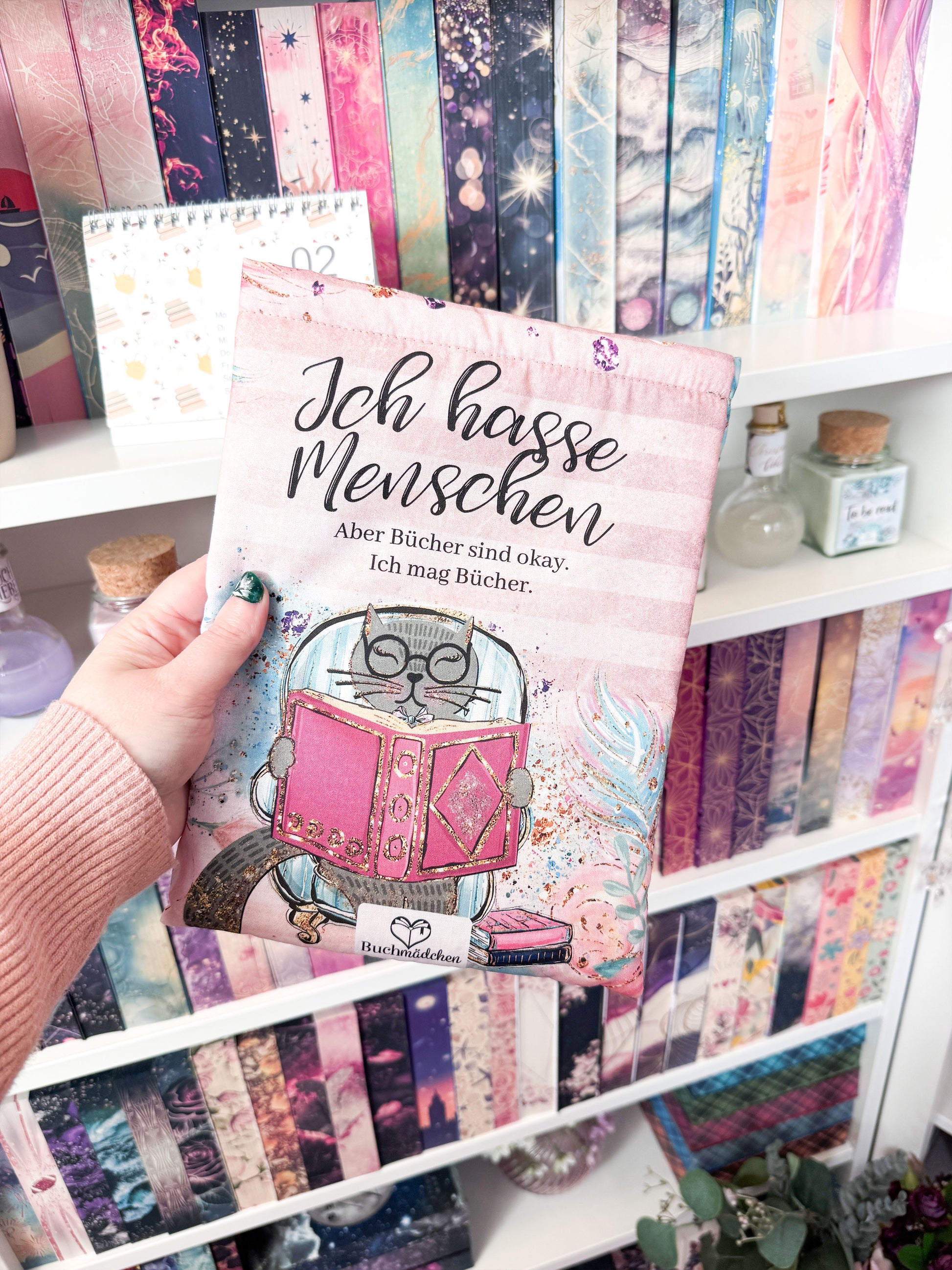 Unsere flauschige Buchtasche ist der perfekte Schutz für deine Lieblinge! Sie wurde in Handarbeit hergestellt und mit dem buchigen Design zeigst du klar und deutlich, für was dein Herz schlägt: Bücher. 💕