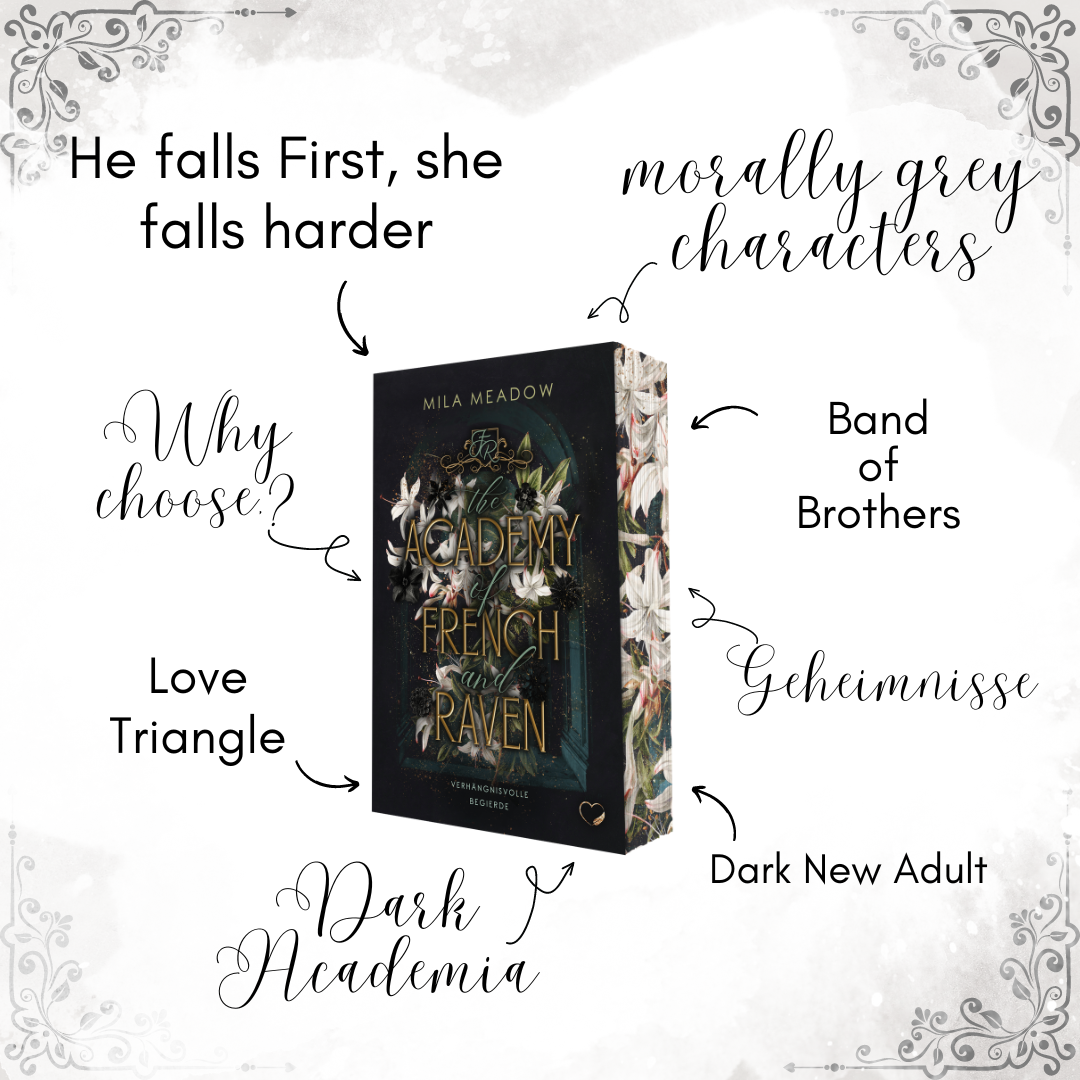 Hierbei handelt es sich um eine wunderschöne Farbschnittausgabe* zu "The Academy of French and Raven (Band 1) " von der Autorin Mila Meadow. Zu dem Buch erhältst dueine Charakterkarte und Exlibris dazu! 🦋 - nur solange der Vorrat reicht!