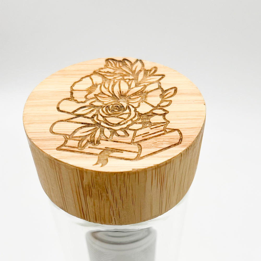 Umweltfreundliche Wasserflasche aus doppelwandigem Glas mit Bambusdeckel. Inklusive passendem Filter für Tee oder Obst. 300ml Fassungsvermögen. Für warme sowie kalte Getränke, nicht spülmaschinenfest.