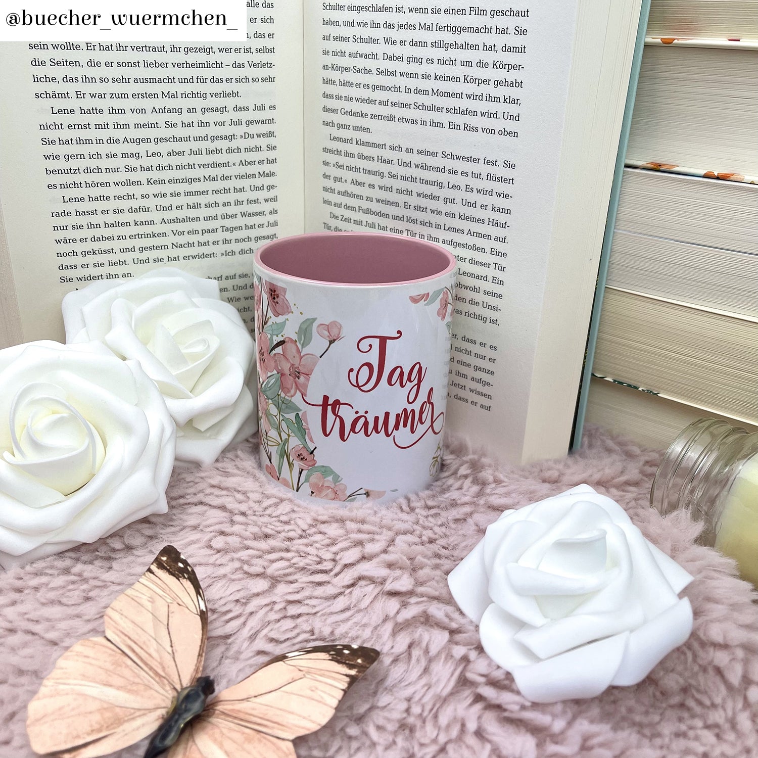 Büchertasse mit farbigem Henkel und Innenseite. Wurde von uns selbst bedruckt ♥