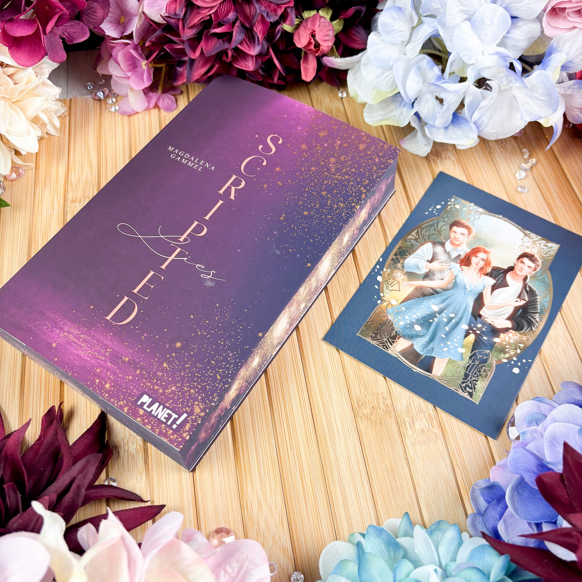 Das Buch erhält einen exklusiven Farbschnitt*, den es nur bei Buchmädchen gibt. Außerdem legen wir, solange der Vorrat reicht, eine Charakterillustration dazu! Außerdem haben wir uns sagen lassen, dass die opulent veredelten Klappenbroschur (haben wir da Goldfolie gehört?) eine vierfarbige Filmstadt-Karte enthält.
