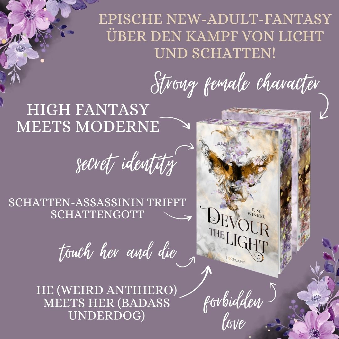 Seid ihr bereit für das Finale der Romantasy-Dilogie von F.M. Winkel über eine Schattenassassinin, die bei ihrer illegalen Arbeit den Schattengott aus Versehen befreit? 😱