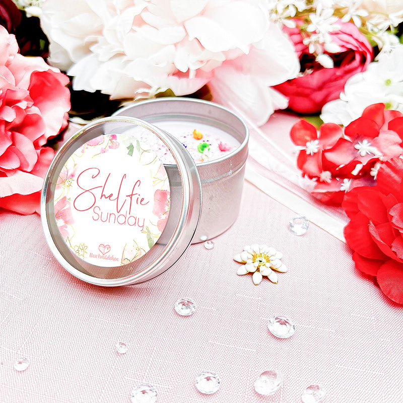- Bei der Dekoration der Kerze kann die Anordnung eventueller Blüten, Glitzer und Co. leicht vom Bild abweichen, da jede individuell von uns hergestellt wird.