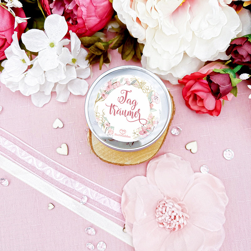 - Bei der Dekoration der Kerze kann die Anordnung eventueller Blüten, Glitzer und Co. leicht vom Bild abweichen, da jede individuell von uns hergestellt wird.