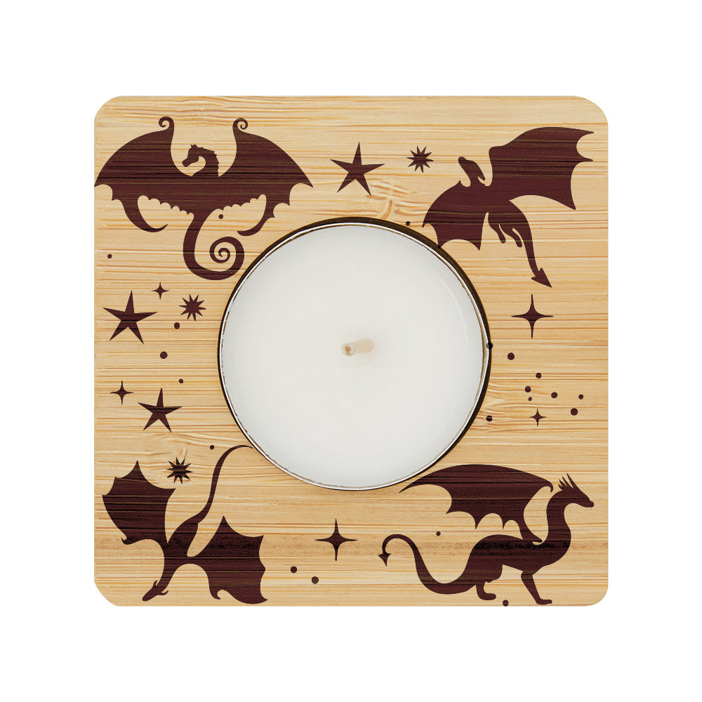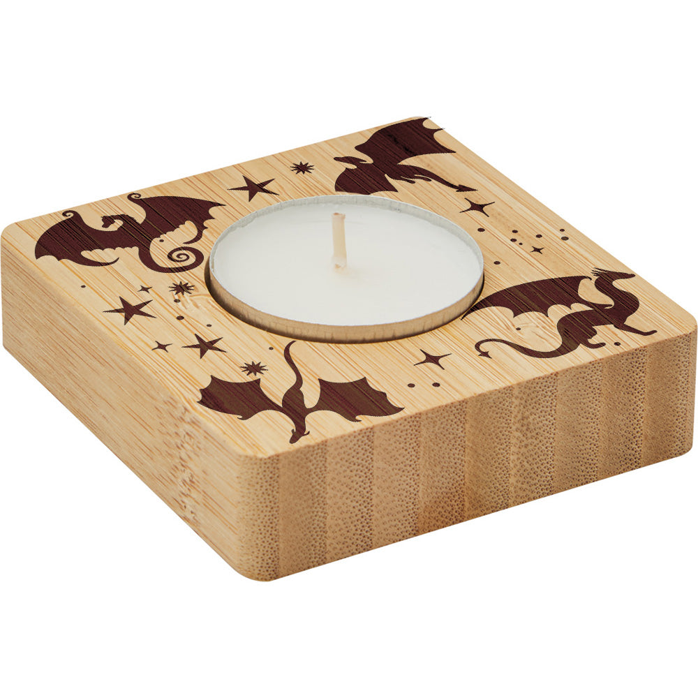 Teelichthalter aus Bambus mit gelasertem Motiv. Mit Teelicht ohne Duft.